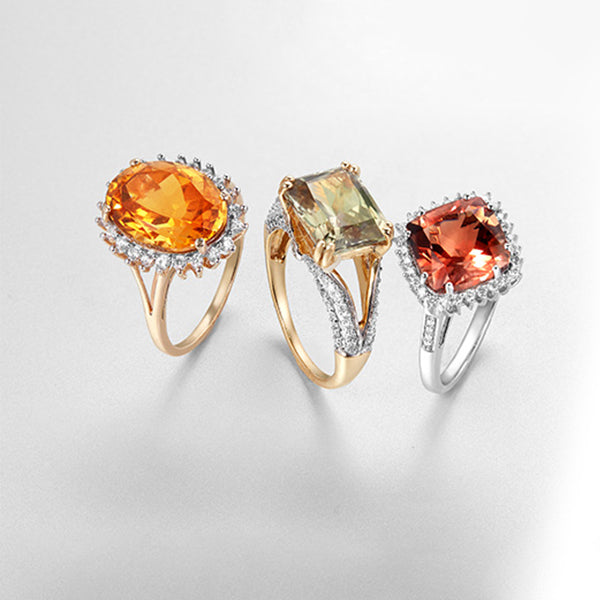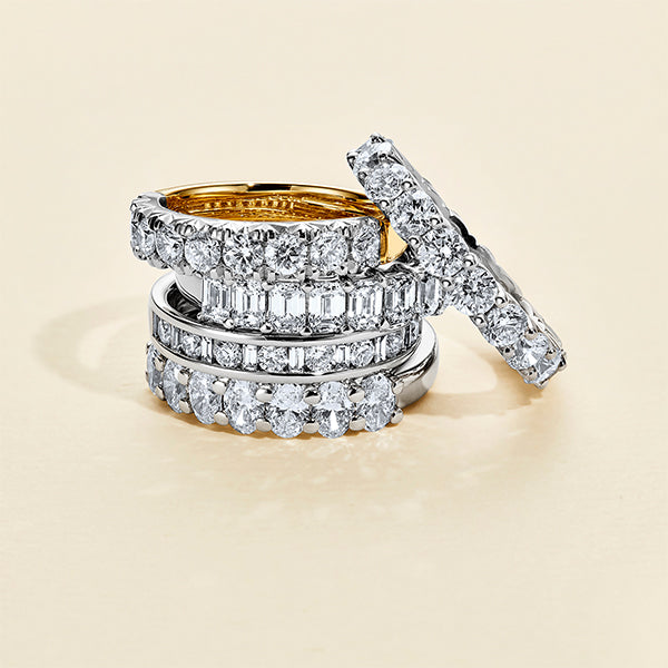 Meravigliose montature in pavé in diverse combinazioni di colori.